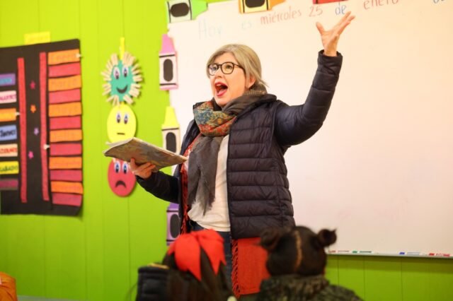 La campaña dio inicio en esta escuela primaria, en la que se llevaron a cabo lecturas de cuentos en los diferentes salones de clases, donde las niñas y niños intervienen de manera espontánea recordando pasajes que les son familiares o cuestionando la actitud de alguno de los personajes.