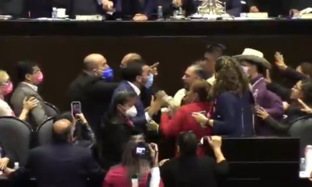 Durante la madrugada de este miércoles, diputados de los partidos Morena y PAN se enfrascaron manotazos, jaloneos e insultos en la tribuna, en el momento en que panistas, priistas y demás partidos políticos exigen se llevara a cabo la votación electrónica para una reserva de la diputada María Clemente Moreno del partido Movimiento Regeneración Nacional (Morena) quien apoyaba el mantenimiento de organizaciones civiles.