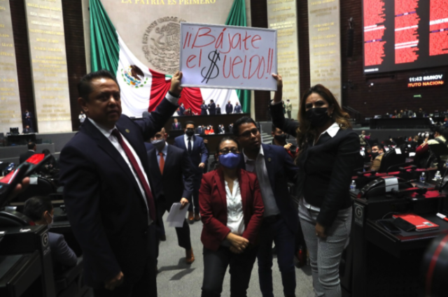 Fueron diputados de Movimiento de Regeneración Nacional (MORENA), Partido del Trabajo (PT) y Partido Verde Ecologista de México (PVEM), quienes recibieron a Córdova Vianello con gritos de: “Que se bajen el sueldo” y “traidores”.