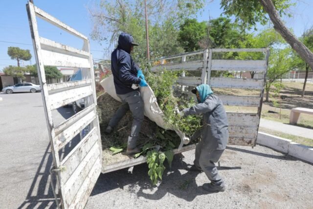 En el fraccionamiento Versalles tres parques entre las calles Valle de Yaqui y Valle de los Naranjos, fueron atendidos por una cuadrilla de la dependencia, en donde hicieron actividades de limpieza, corte de pasto, retiro de maleza y basura.