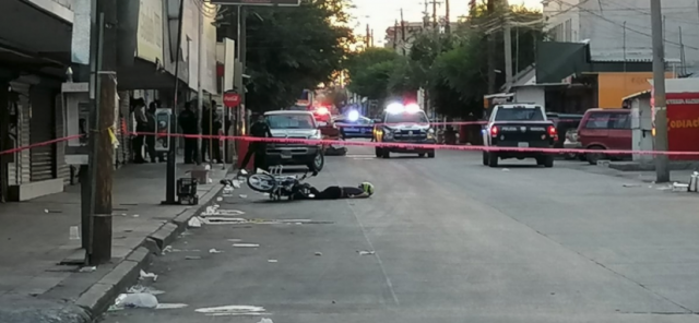 Un hombre que viajaba en motocicleta fue ejecutado en las calles Francisco Javier Mina y Rafael Velarde en la zona Centro esta tarde, según el informe del agente, acudieron a custodiar el lugar.