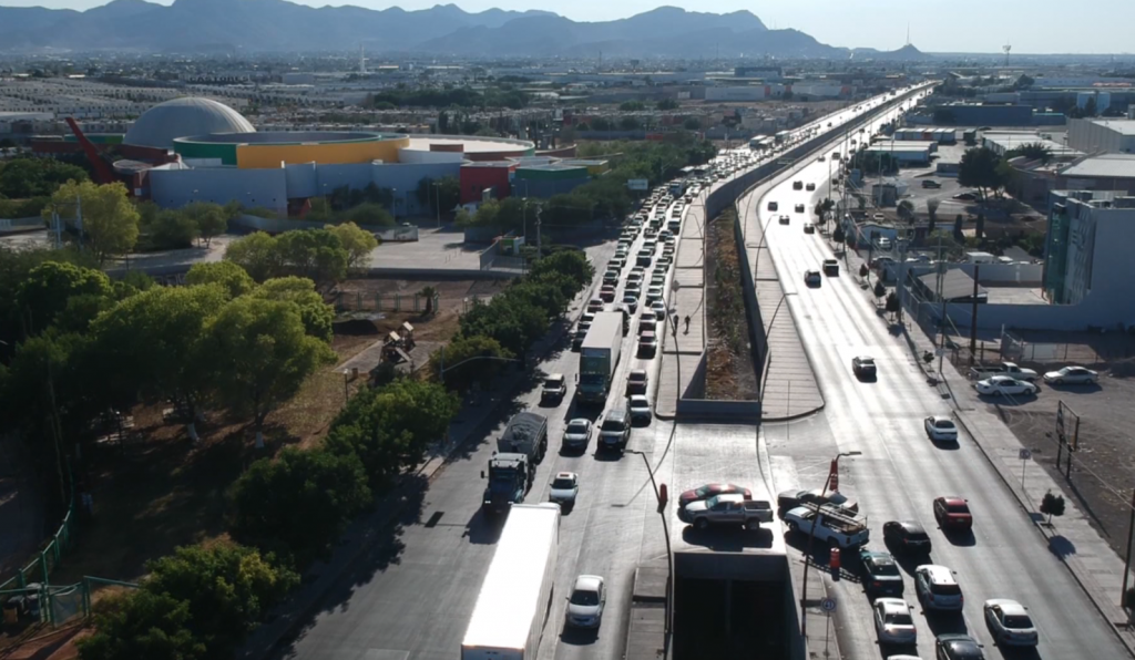 Un severo congestionamiento vial se registra en la avenida Teófilo Borunda, en el tramo comprendido de tecnológico a Óscar Flores Sánchez debido a una nueva obra.