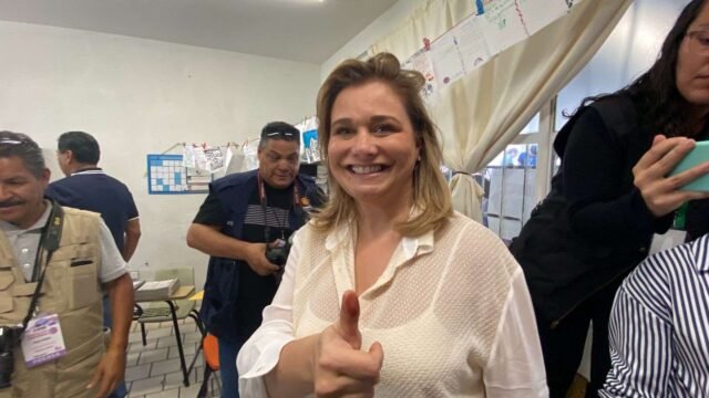 Cuando terminó, la gobernadora Maru Campos salió mostrando su pulgar marcado como señal de que ejerció su derecho constitucional, invitando a los chihuahuenses a salir e ir a sus casillas.