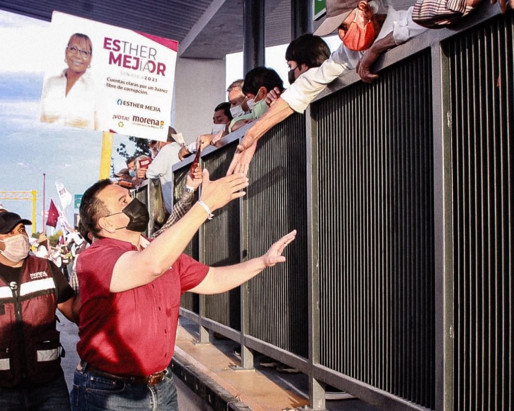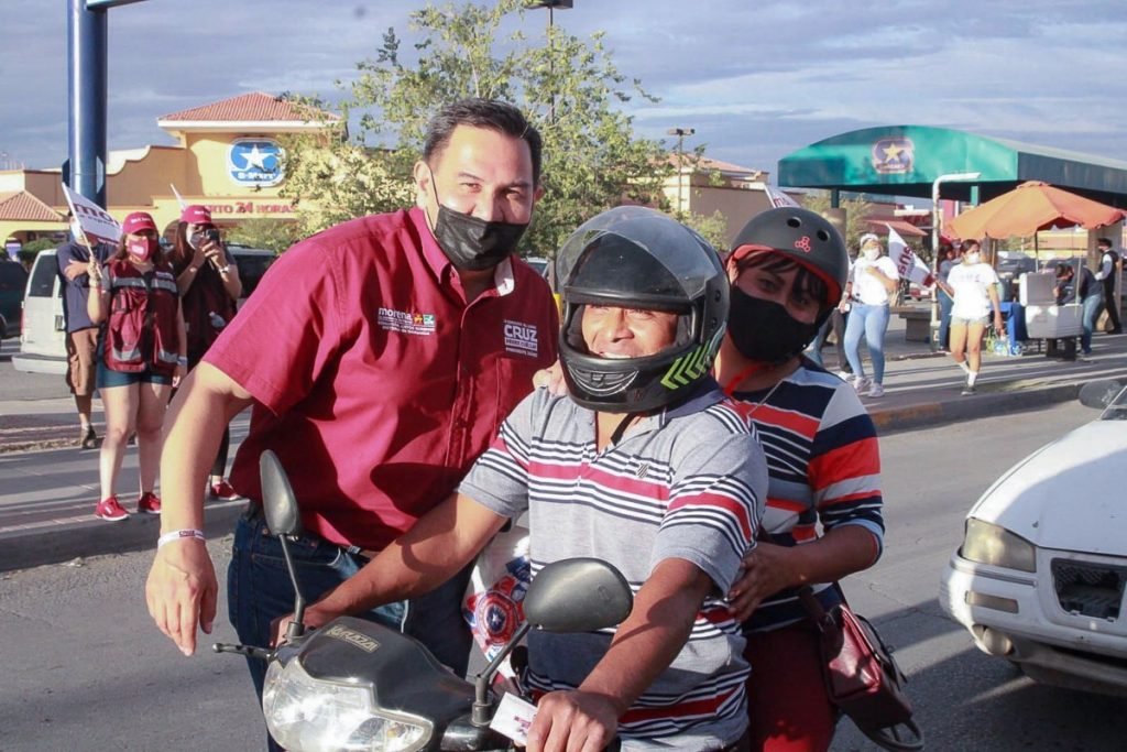Centenares de simpatizantes de la 4T con Cruz Pérez Cuéllar se reunieron en el crucero de Oscar Flores y Blvd. Zaragoza para entregar información sobre los planes de gobierno del candidato a la alcaldía por Morena en Coalición con el Partido del Trabajo y Nueva Alianza.