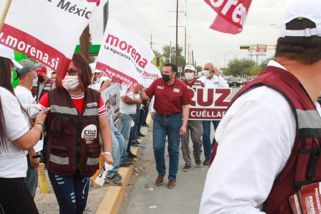 Centenares de simpatizantes de la 4T con Cruz Pérez Cuéllar se reunieron en el crucero de Oscar Flores y Blvd. Zaragoza para entregar información sobre los planes de gobierno del candidato a la alcaldía por Morena en Coalición con el Partido del Trabajo y Nueva Alianza.