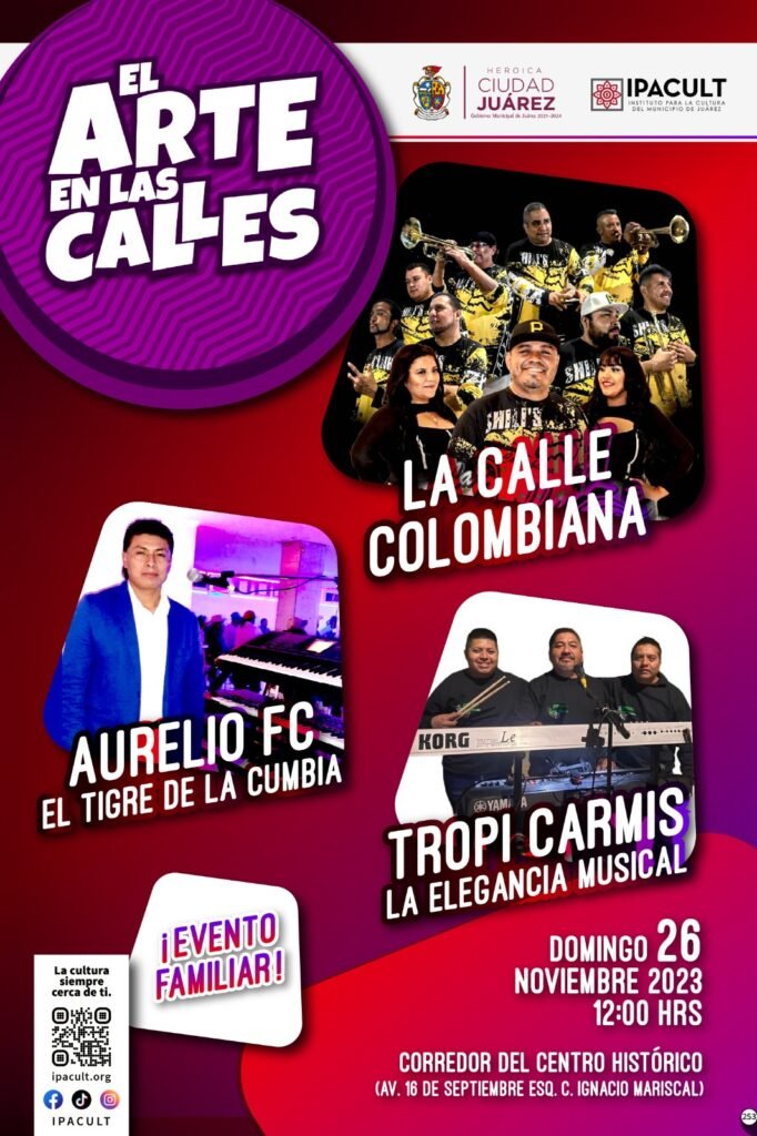 El Instituto para la Cultura del Municipio de Juárez (IPACULT), llevará a cabo el fin de semana el programa Arte en las calles, evento organizado para que la comunidad pase una excelente tarde de domingo, en la que podrá cantar y bailar al ritmo de los artistas invitados, en un ambiente familiar y de carácter gratuito.