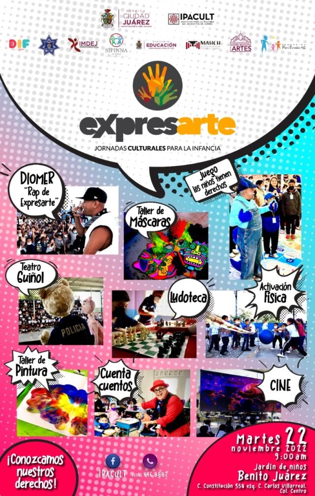 “ExpresArte”, tiene actividades lúdicas para los infantes, en las que, por medio de la realización de talleres de pintura, talleres de máscaras, teatro guiñol, actividad física, cuenta cuentos, cine y ludoteca, se combina la jornada cultural enfocada en los derechos de los niños.