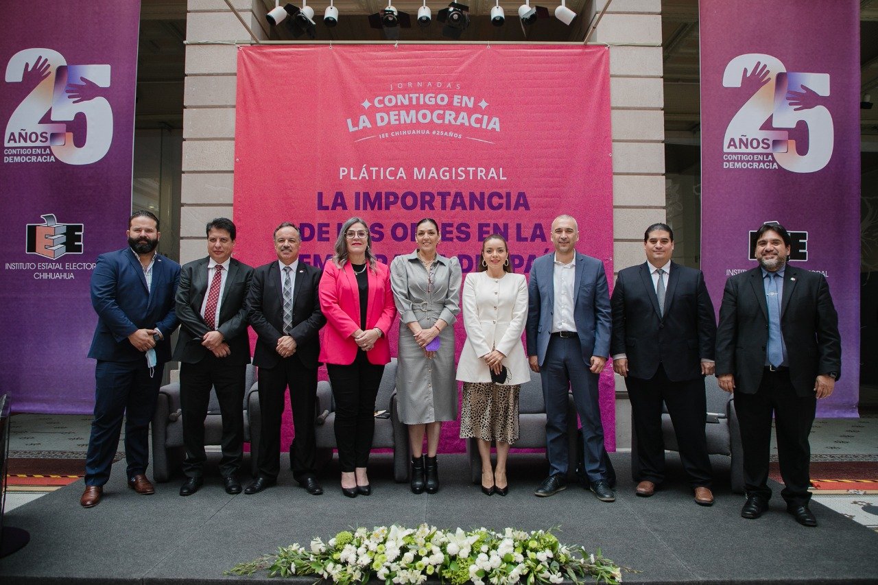El evento realizado en el museo Casa Chihuahua, inició con un mensaje de bienvenida de la consejera electoral del IEE, Yanko Durán Prieto, quien destacó que los 25 años de existencia del IEE en Chihuahua han sido de avances y satisfacciones para la entidad, y que, si bien hay mucho camino por recorrer, sería un error borrar la historia que se ha construido de la mano de la ciudadanía.