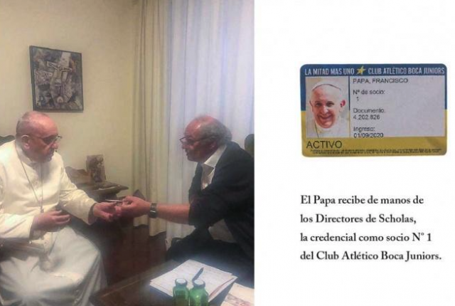 El papa Francisco, conocido por su fervor por el club de futbol argentino San Lorenzo, recibió un carnet de socio de otro club de Buenos Aires, Boca Juniors, en el marco de un convenio entre la institución ‘xeneize’ y las Scholas Occurrentes, una fundación educativa del Vaticano.
