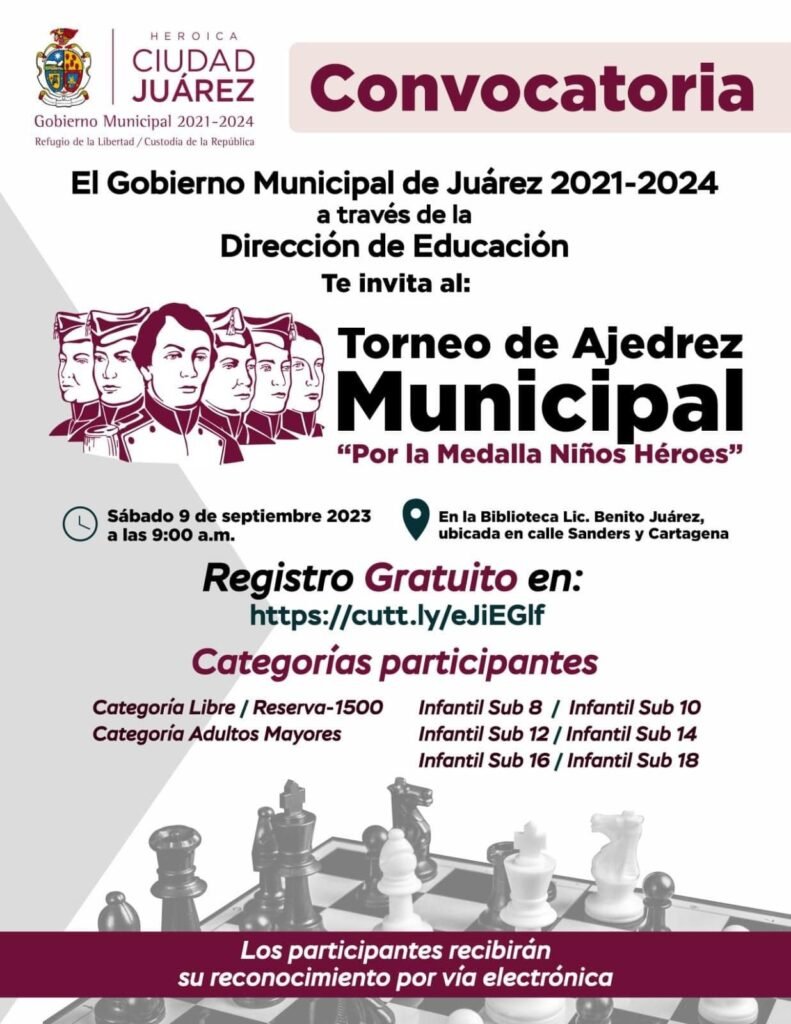 La Dirección de Educación Municipal informó que sigue abierto el registro para participar en el Cuarto Torneo de Ajedrez 2023 “Por la Medalla Niños Héroes.