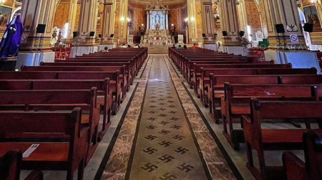 MÉXICO- En el noreste de México hay una iglesia cuya planta principal contiene en el suelo 141 esvásticas o cruces gamadas, vinculadas en el imaginario social con el Tercer Reich, el nazismo y el mandato de Adolf Hitler en Alemania.