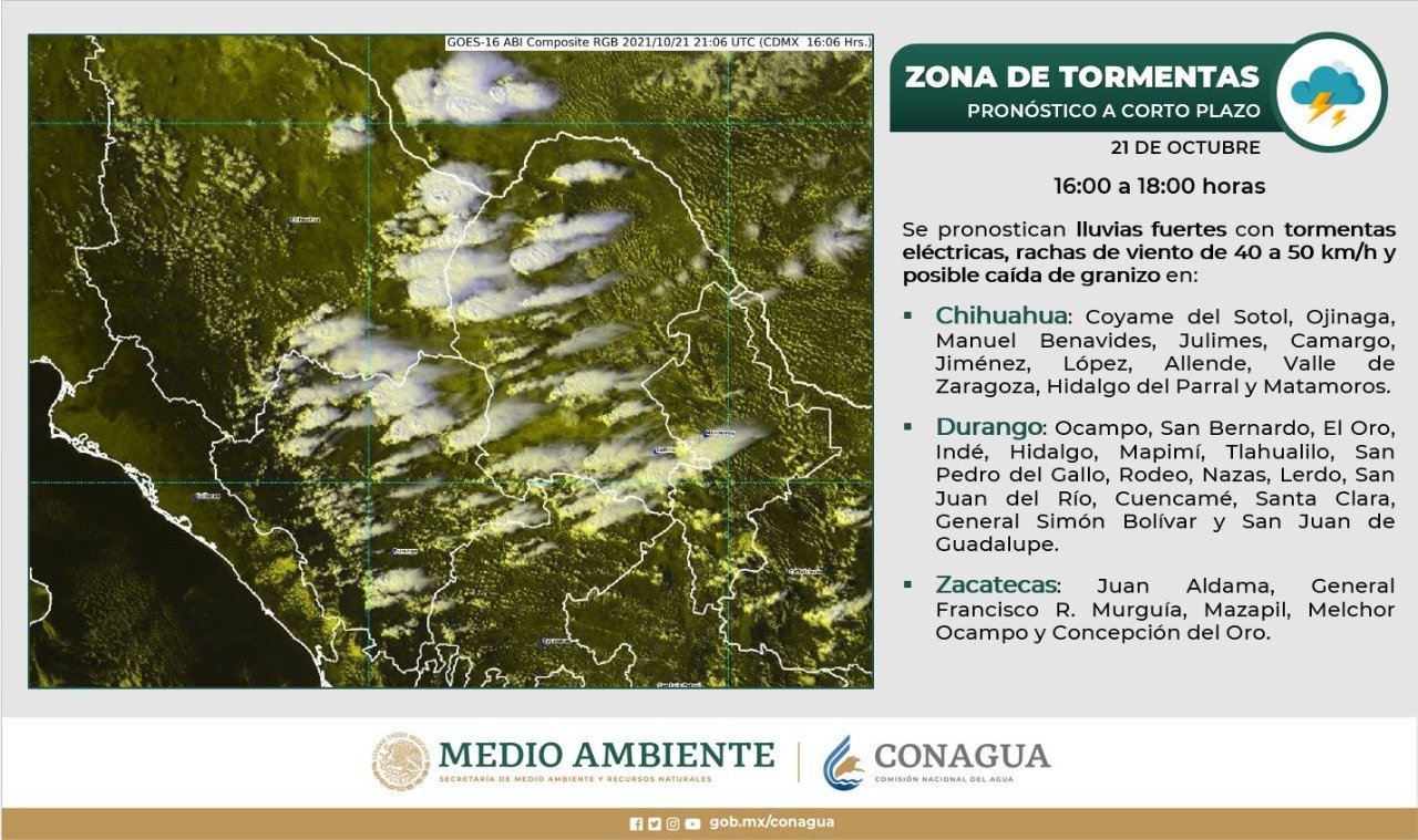 El Gobierno del Estado, a través de la Coordinación Estatal de Protección Civil (CEPC), emite un aviso preventivo para que la ciudadanía tome las previsiones correspondientes, en base al pronóstico de lluvias, caída de granizo y viento para estas próximas horas en algunas zonas del territorio estatal.