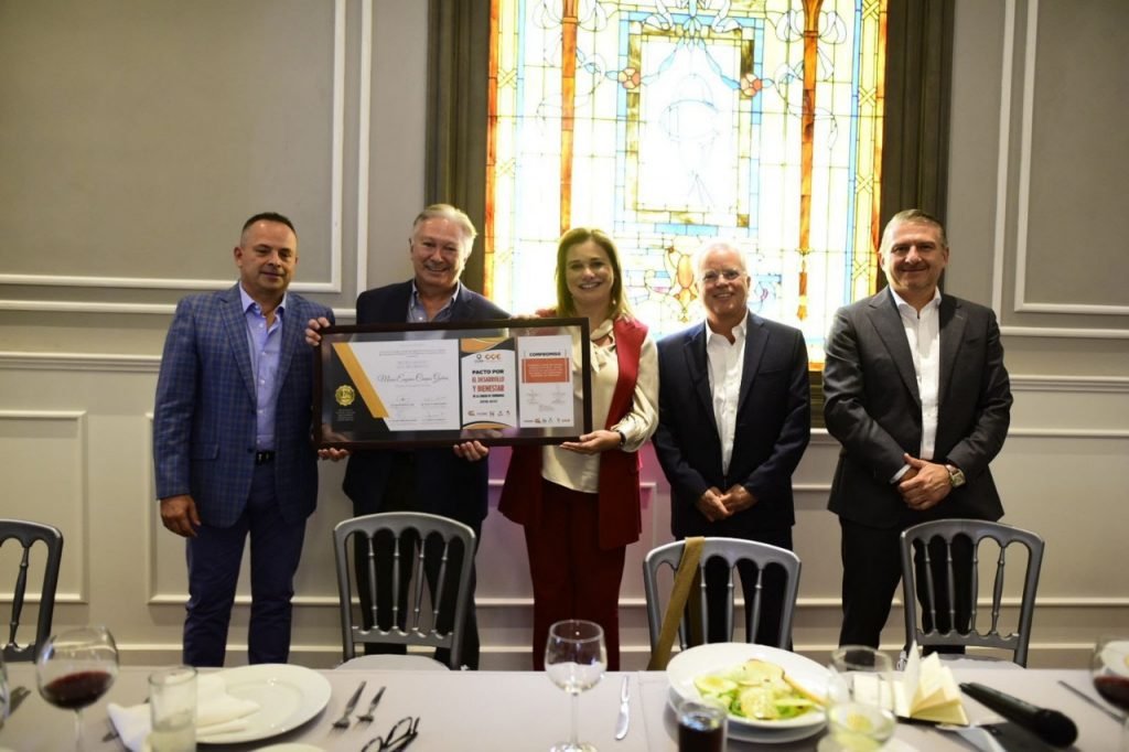 Asimismo, le fue otorgado un reconocimiento a Maru firmado por Sergio Mendoza, presidente de DESEC; Francisco Santini, presidente del CCE; Ernesto Hermosillo, vicepresidente de la Plataforma de Inteligencia Competitiva del Sector Privado y Jorge Cruz, vicepresidente del Consejo de Desarrollo Económico Regional de Chihuahua Centro, por el cumplimiento del 97 por ciento de compromisos adquiridos para el bienestar económico de la capital.