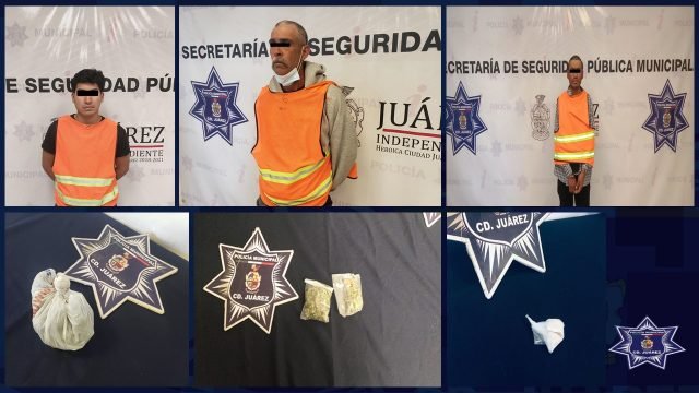 En acciones permanentes para combatir el narcomenudeo en la ciudad, agentes de la Policía Municipal arrestaron a tres presuntos narcomenudistas, asegurándoles marihuana para elaborar 112 cigarrillos y 15 dosis de cristal.