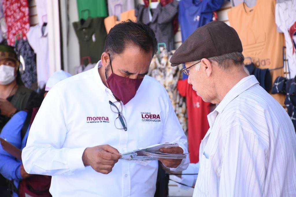 Juan Carlos Loera escuchó a Manuel Chávez, comerciante de la calle cuarta, quien expresó que el pueblo necesita que los políticos se bajen al piso y vean la realidad. No es el discurso lo que va a resolver los problemas, expresó Manuel Chávez.