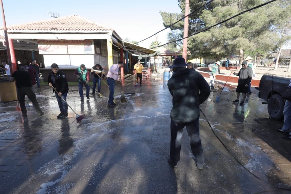 Las labores iniciaron a las 8:00 de la mañana y contemplan barrido, lavado con detergentes, recolección de residuos y atención en áreas comunes, con apoyo de cuadrillas de Limpia, pipas de agua de Protección Civil y Regulación Comercial con personal de inspección.