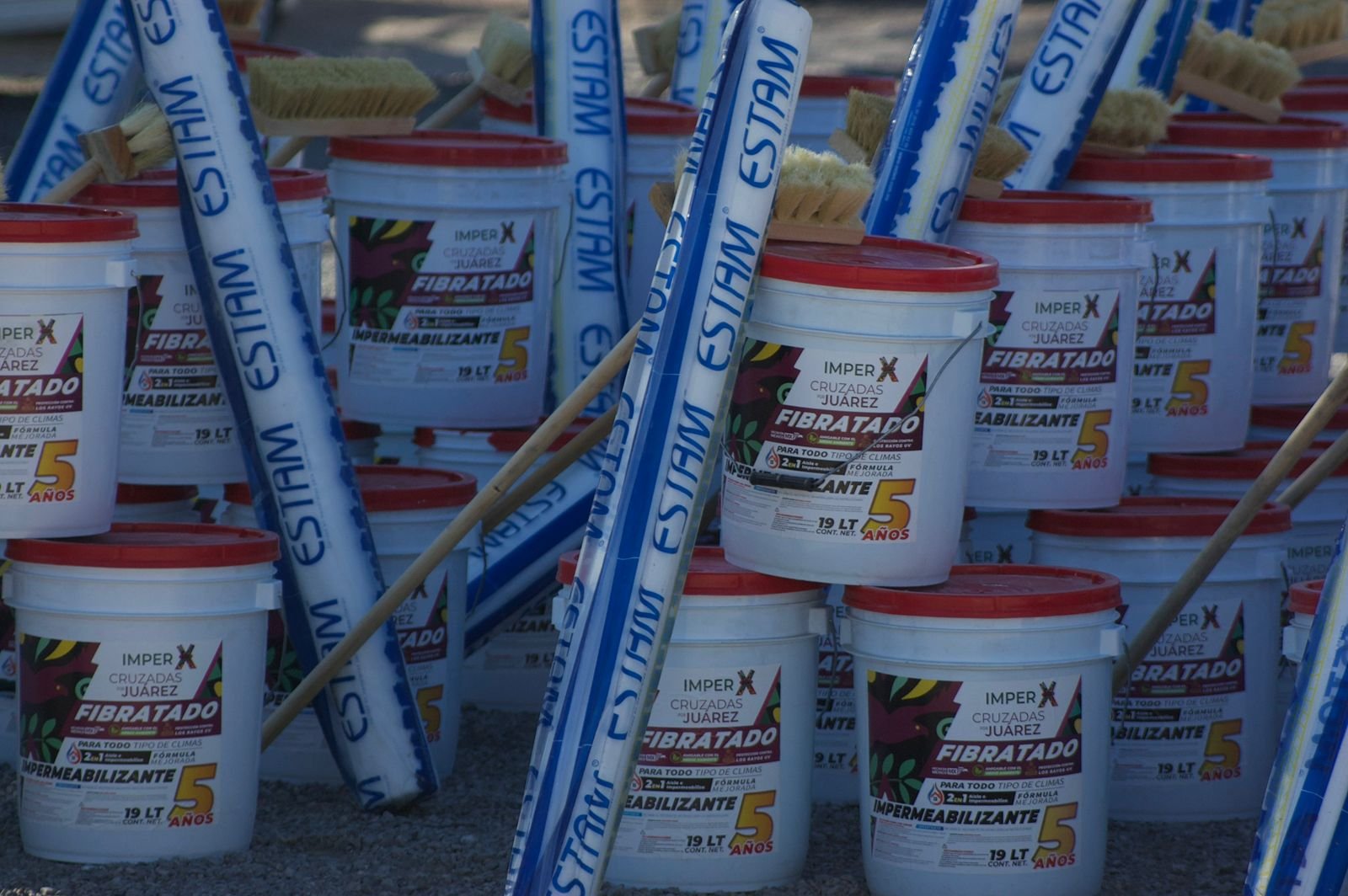 Cada paquete entregado incluye tres cubetas de impermeabilizante de 19 litros, con una duración aproximada de hasta cinco años, además de malla y cepillo, lo que permite a las y los beneficiarios contar con un kit completo para la correcta protección del techo de sus viviendas.