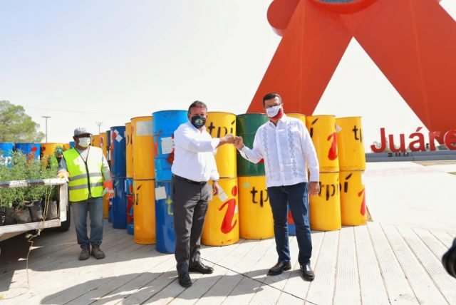 El presidente municipal, Armando Cabada Alvídrez, encabezó la entrega de apoyos al municipio de Nuevo Casas Grandes, los cuales se componen de mil 500 árboles y 400 contenedores para basura. Lo anterior se llevó a cabo en la Plaza de la Mexicanidad, donde el alcalde señaló que este acto es simbólico, pero permite reconfirmar la buena relación que existe entre ambos municipios.
