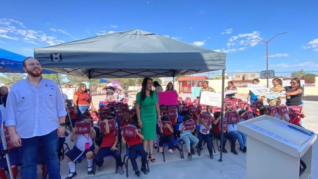 Detalló que en esta entrega se benefició a 230 alumnos del Preescolar Luis L. León, y a 210 niños del jardín de niños Víctor Hugo Rascón Banda 210.