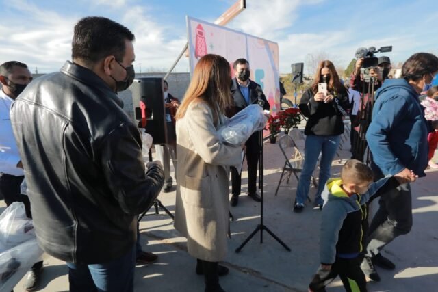 Habitantes de los kilómetros y de la colonia Sol Poniente recibieron 800 chamarras y alimentos que fueron donados por comerciantes de esta ciudad, los cuales fueron entregados por el presidente municipal, Cruz Pérez Cuellar y la presidenta del DIF Municipal, Rubí Enríquez.
