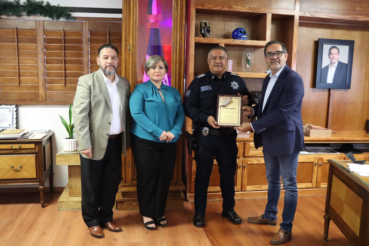 El reconocimiento en placa cita lo siguiente “Por su honestidad y valentía en el desempeño de su función por medio de la cual asegura la tranquilidad de la ciudadanía defendiendo con valentía y honor los derechos de los que conformamos esta ciudad”.