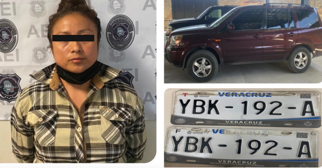 Elementos de la Agencia Estatal de investigación detuvieron a la conductora de un vehículo de procedencia extranjera, internado de forma ilegal al país, mismo que portaba placas de circulación del estado de Veracruz.