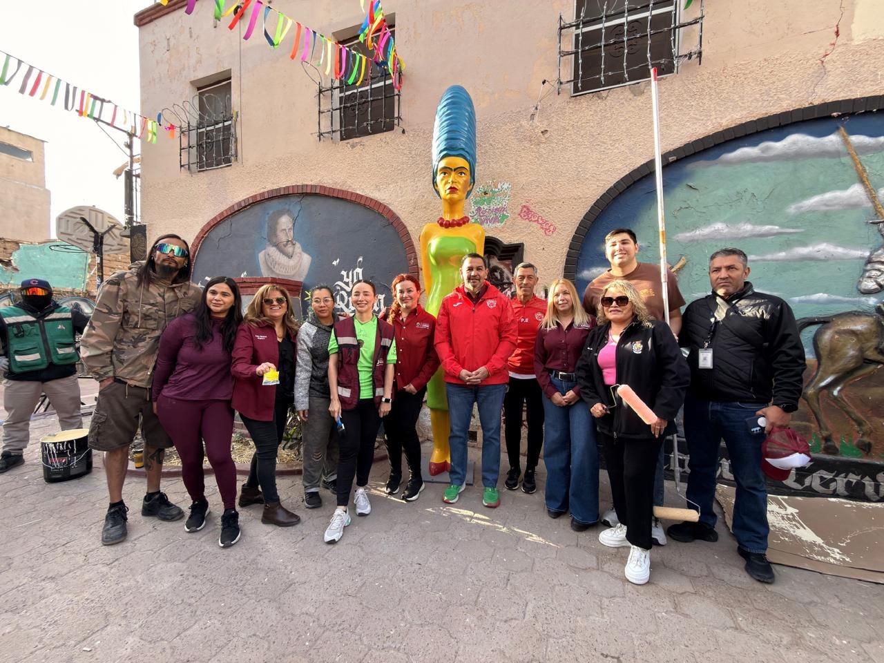 La funcionaria detalló que la llegada de la obra se da en el marco de la brigada “Juárez Amanece Limpio” y gracias a la colaboración entre distintas instancias como el Centro Fundacional, el Instituto Municipal del Deporte y colectivos artísticos independientes.