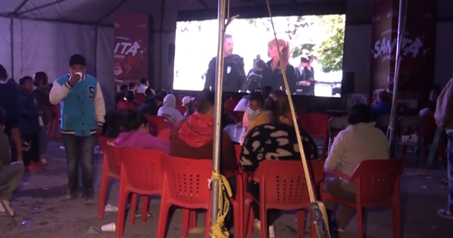 Cientos de familias y sus hijos menores de edad permanecen en una enorme carpa desde hace más de 20 horas en los patios del dif en el Chamizal con el fin de recibir una bolsa de juguetes por parte de santa bombero.