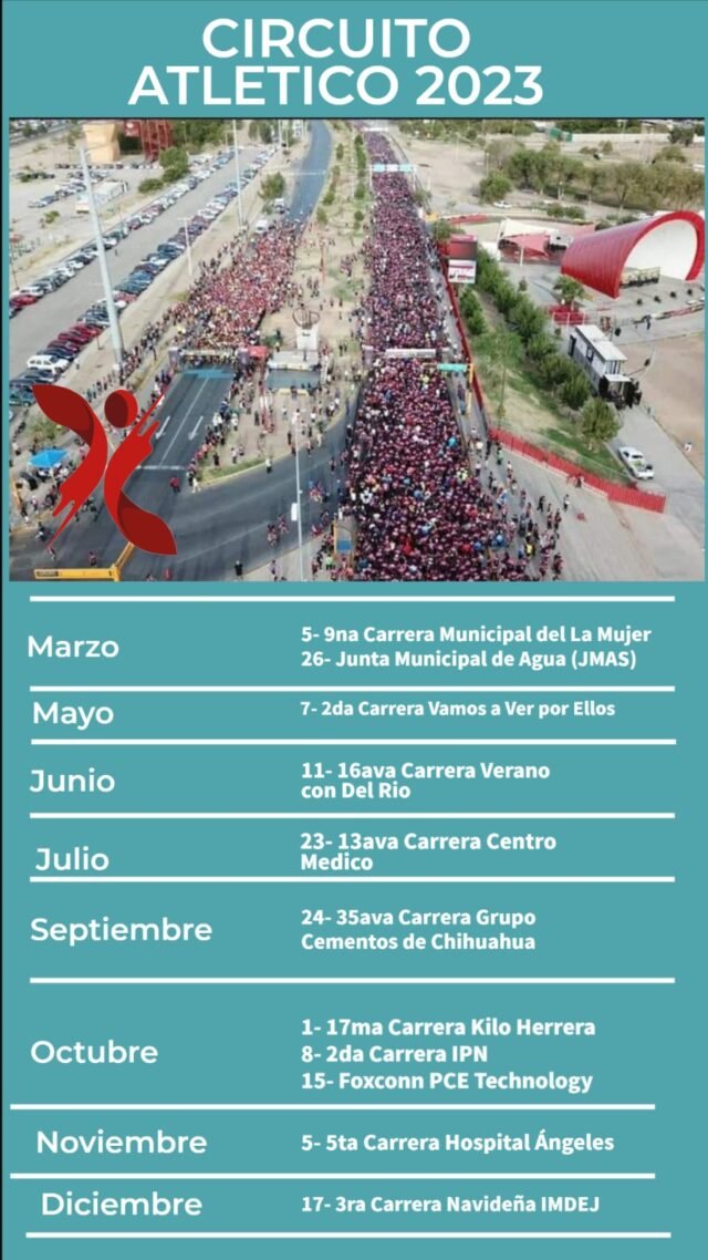 Para el 24 de septiembre se efectuará la Carrera Cementos de Chihuahua en su trigésima quinta edición; el 1 de octubre, la décimo séptima carrera Fernando “Kilo” Herrera; el 8 de octubre, la segunda edición del Instituto Politécnico Nacional y el 15 de octubre, Foxconn PCE Technology.