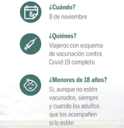 Lo que esto implica que los mexicanos con visa de cruce fronterizo vigente para cruzar la frontera podrán volver a El Paso y a otras comunidades fronterizas de Estados Unidos para hacer compras y visitar a los amigos y familiares por primera vez en 20 meses.