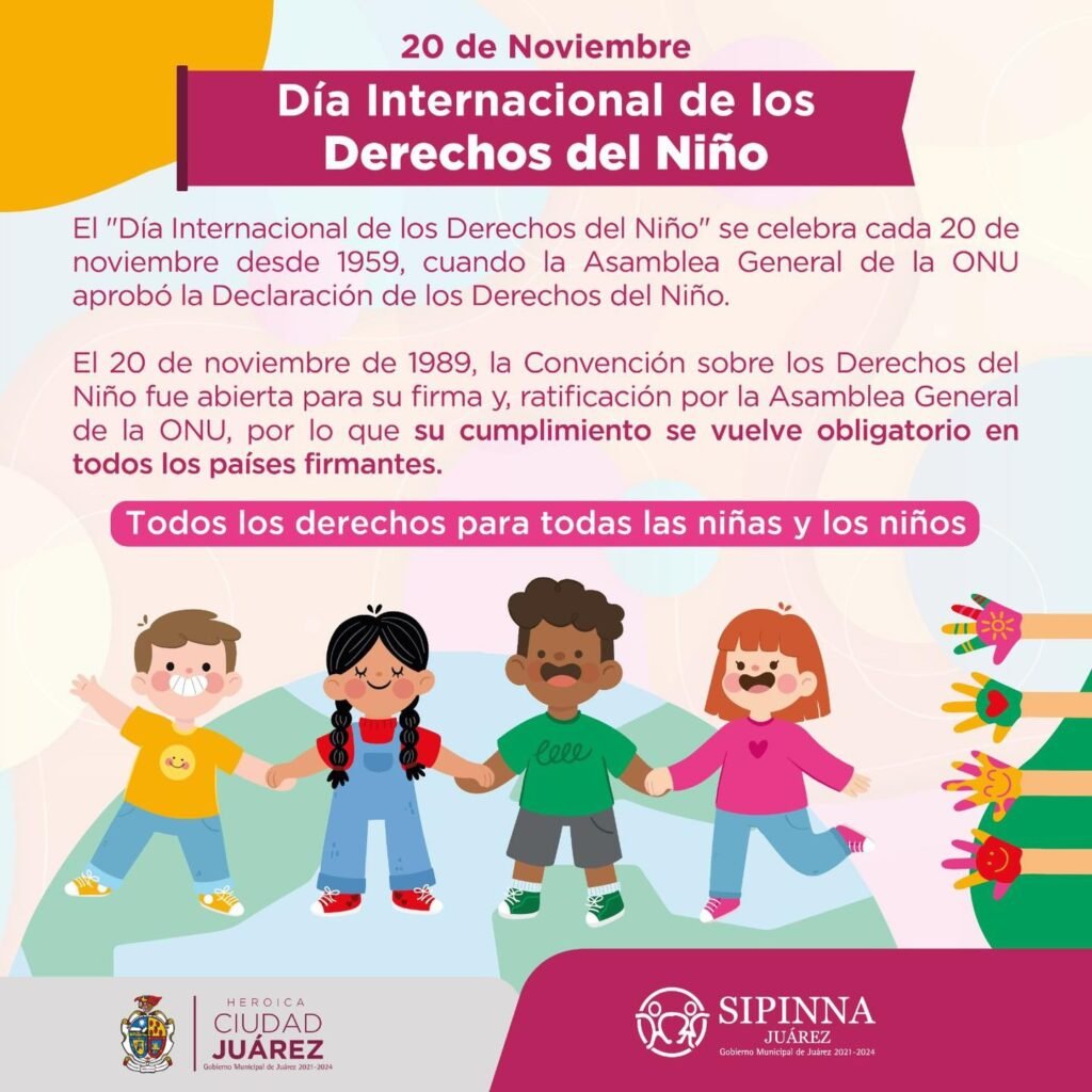 El Día Internacional de los Derechos del Niño se celebra cada 20 de noviembre, luego de que la Asamblea General de las Naciones Unidas (ONU), aprobó la declaración y se instituyó que a partir de 1956 se volviera obligatoria en todos los países.