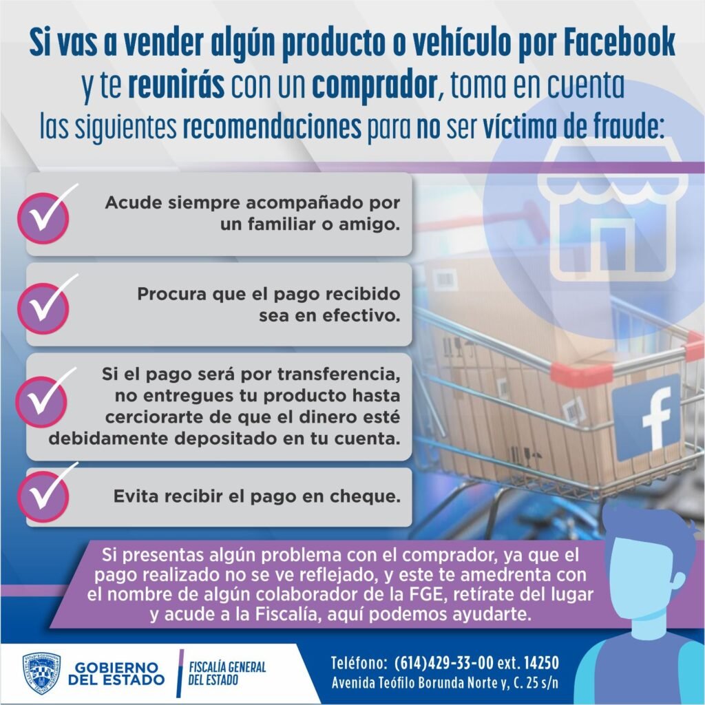 La Fiscalía de Distrito Zona Centro, a través de la Unidad de Investigación de Delitos Patrimoniales, exhorta a las personas que realizan ventas de productos o vehículos a través de redes sociales, a tener cuidado para que eviten ser víctimas de un delito.