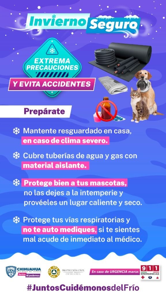 La Coordinación Estatal de Protección Civil (CEPC) hace un llamado a las familias chihuahuenses para extremar precauciones en el manejo de calentones, aparatos eléctricos y otras formas utilizadas para calentar el hogar, así como dejar abiertas las ventanas de 10 a 15 centímetros para permitir la ventilación, y que no se acumule el monóxido de carbono que expide la combustión.
