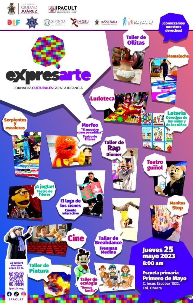 Las dinámicas del programa social ExpresArte del Instituto para la Cultura del Municipio de Juárez (IPACULT), ahora llegan con las niñas y niños de la Escuela Primaria Primero de Mayo, mañana jueves 25 a las 8:00 de la mañana.