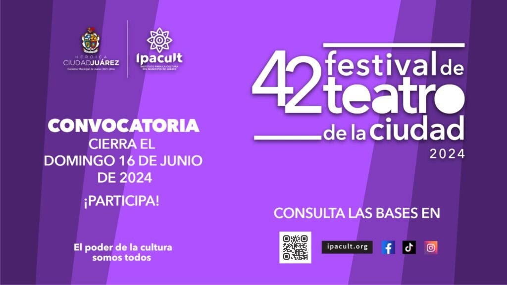 Las compañías de teatro que deseen participar en el Festival de Teatro de la Ciudad, tendrán hasta el domingo 16 de junio a las 12:00 del medio día para atender a la convocatoria, informó la titular del Instituto para la Cultura del Municipio de Juárez (IPACULT), Myrna Judith Barajas Martínez.