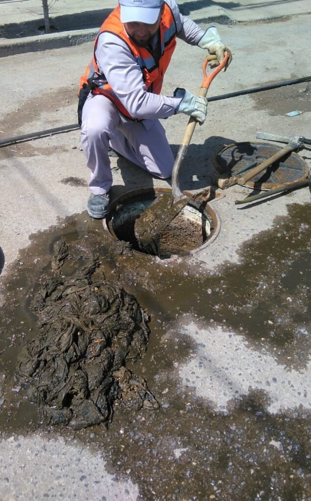 La JMAS Juárez informa a través del departamento Comunicación Social que, toallitas húmedas y papel sanitario se extrajo de una alcantarilla de la cual brotaba el agua residual.