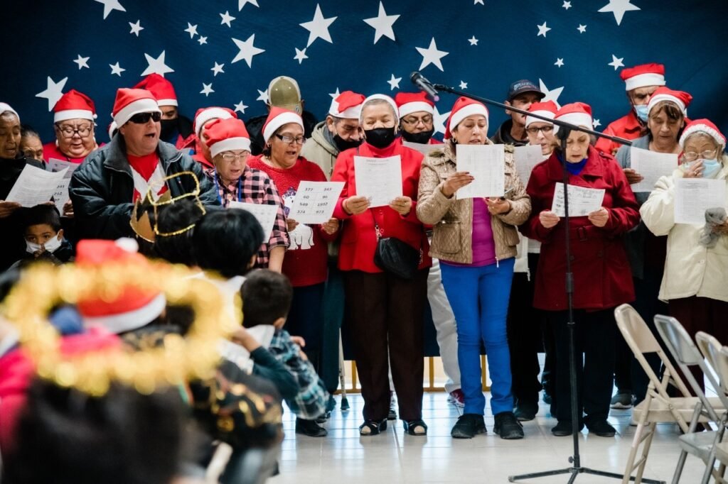 La festividad, a la cual titularon “Posada bajo las estrellas”, pues una luminosa decoración en la parte alta de las instalaciones asemejaba una noche estrellada, contó con la participación de 45 integrantes del Consejo del Adulto Mayor Siglo XXI cantando al ritmo de un pandero “Campanas de Belén”.