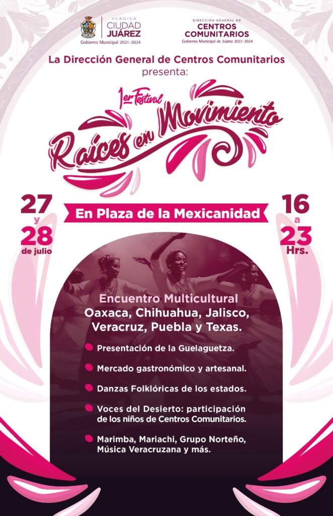 La Dirección de Centros Comunitarios presentará el próximo fin de semana el primer festival “Raíces en Movimiento”, evento que ofrecerá una amplia gama de presentaciones culturales, gastronómicas y musicales, dio a conocer Jesús Manuel García Reyes, titular de la dependencia.