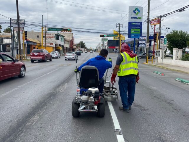 Como parte del programa de Cruzada por la Mejora Vial, la Coordinación General de Seguridad Vial a través de personal del Departamento de Control de Tráfico, está por finalizar los trabajos de aplicación de pintura termoplástica sobre la avenida Adolfo López Mateos, desde la calle David Herrera Jordán hasta el Eje Vial Juan Gabriel.