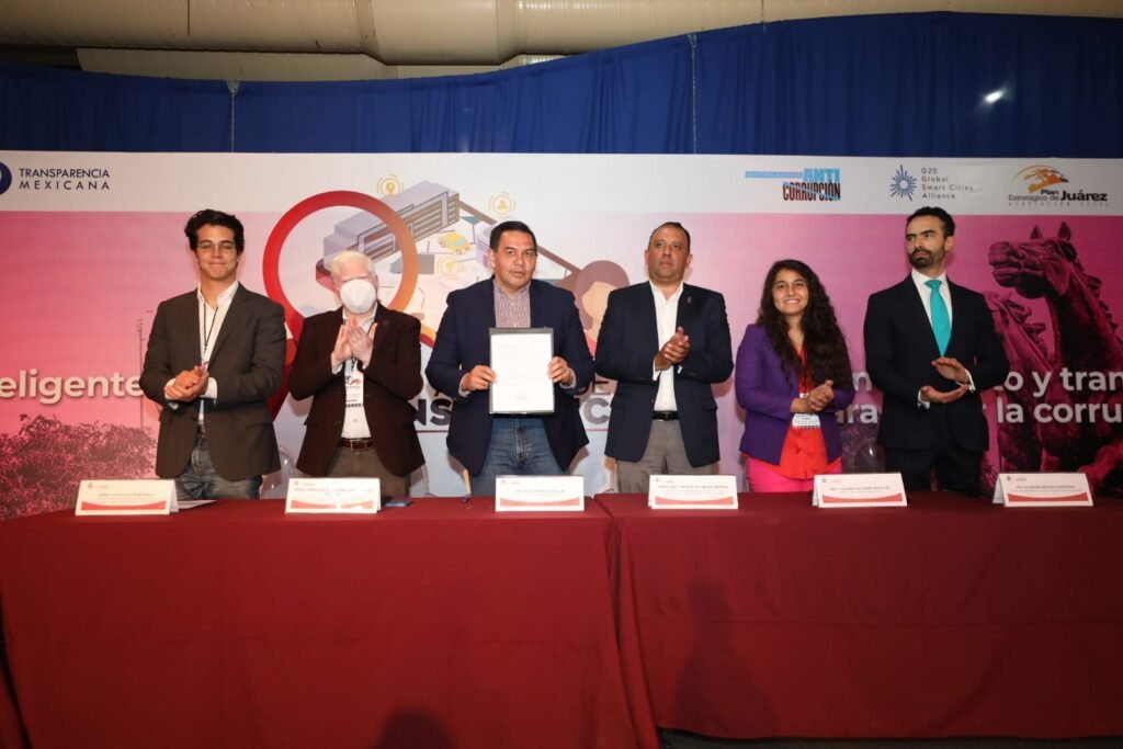 El Presidente Municipal, Cruz Pérez Cuéllar, firmó este día tres convenios de colaboración con distintos organismos autónomos, el Instituto Chihuahuense para la Transparencia y Acceso a la Información Pública (ICHITAIP), Transparencia Mexicana A.C y Global Smart Cities Alliance.