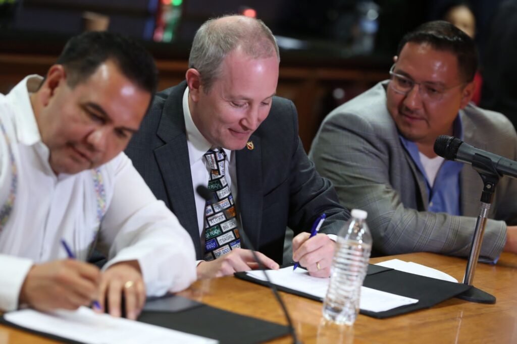 Durante la reunión, el Cónsul General de Estados Unidos en Ciudad Juárez, Eric S. Cohan, agradeció ser testigo de la firma del Memorando de Entendimiento y reconoció el liderazgo del Presidente Municipal, Cruz Pérez Cuéllar, al sumarse al grupo que busca promover mejor marco regulatorio en Juárez.