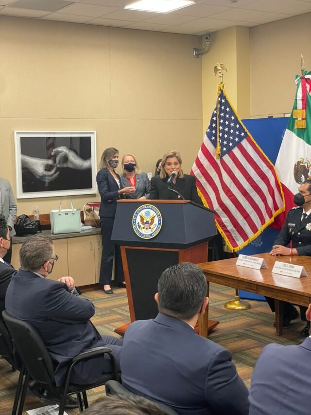 La firma se llevó a cabo en el consulado americano, donde la gobernadora de Chihuahua, María Eugenia Campos Galván, refrendó su compromiso al embajador de estados unidos en México, Ken Salazar, para seguir trabajando en forjar una comunidad binacional.