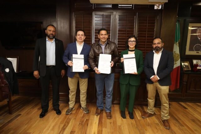 La firma del convenio se llevó a cabo en el despacho del alcalde, donde estuvieron el secretario del Ayuntamiento, Héctor Ortiz Orpinel y la coordinadora de Asesores del Municipio, Daniela González Lara, además de Jorge Peralta Sánchez, subdirector de Gestión Pública, de Ferromex y Jesús Carlos Const Martínez, subgerente de Relaciones Gubernamentales de la misma empresa.