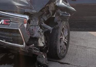 En el lugar, el conductor de una camioneta GMC en color negro se imapctó contra un Chevrolet Malibú en color gris.