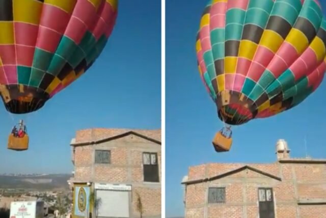 Un tercer video muestra cómo uno de los operadores del globo logra coordinarse con habitantes de la zona para hacer un aterrizaje de emergencia en el techo de un edificio.