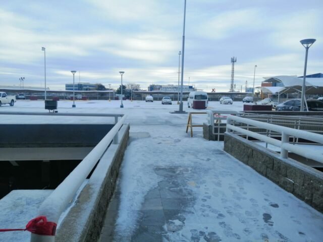También fue acordonada la escalinata principal que da acceso al edificio debido al congelamiento y también se procedió a retirar el hielo y nieve acumulada.