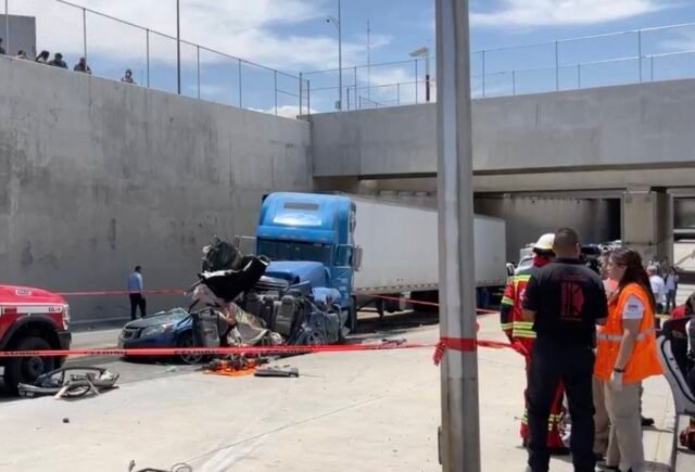 Un nuevo accidente de consecuencias fatales se registró esta tarde en el paso desnivel que se encuentra a un costado de la Presidencia Municipal, donde un automovilista que fue impactado previamente habría perdido el control chocando de frente contra un tráiler, dejando como saldo dos muertos y cuatro personas lesionadas.