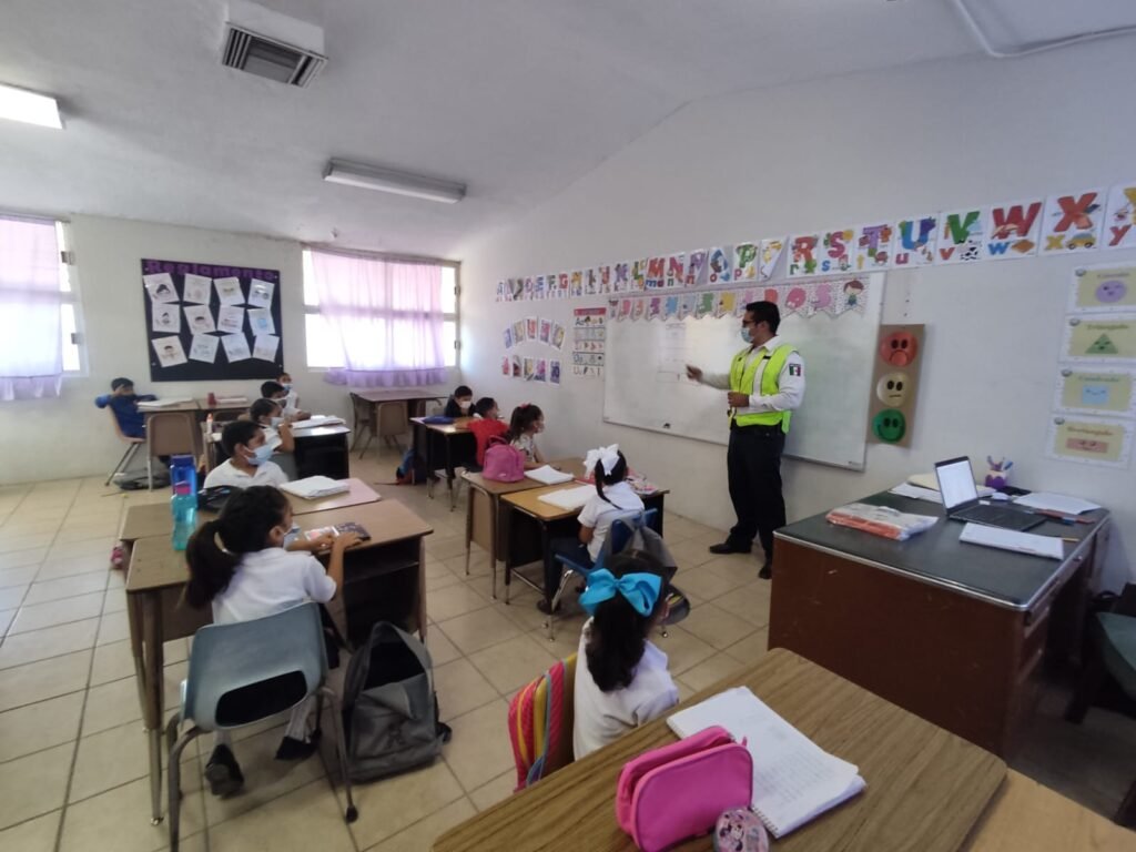 Agentes de la Coordinación General de Seguridad Vial acudieron a la Escuela Primaria Nuevo México para darles las pláticas necesarias para la formación de la brigada escolar.