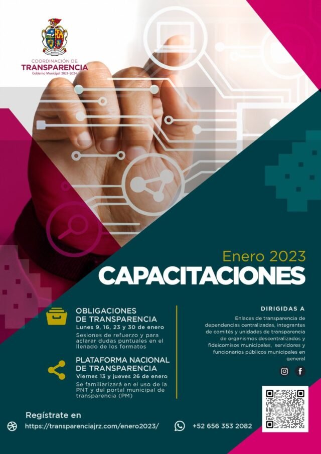 Este curso tiene como objetivo reforzar y aclarar dudas en el llenado de formatos de las obligaciones de transparencia, mientras que la segunda capacitación “Plataforma Nacional del Transparencia” (PNT) se impartirá los días 13 y 26 de enero del 2023.