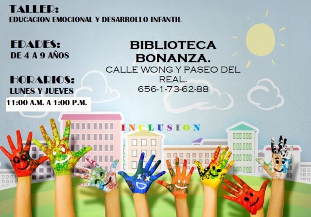 La Dirección de Educación Municipal, a través de la Biblioteca Pública Municipal Bonanza, impartirá el taller de Educación Emocional y Desarrollo Infantil, dirigido a niños de 4 a 9 años de edad.